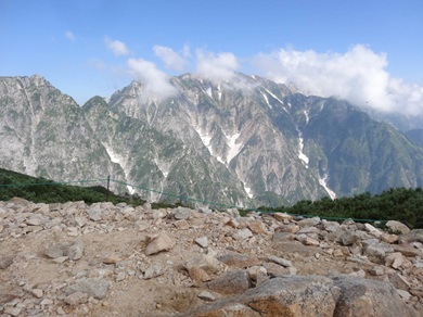 これ以上登山をつずけると全身に痙攣が起き、他人に迷惑をかける日が来るかもしれない。 歩き出した3時間後の扇雪渓付近から軽い痙攣が来る。経口補水液と芍薬甘草湯を飲むが完全には治らない。歩けないほどひどくはないが、たまに両足のふくらはぎに痙攣が来る。ペースを落とし、水を飲み出発から5時間かけて山荘にたどり着いた。 翌朝は唐松岳山頂に向かったが下山のための体力温存のためと過去に3回ほど山頂に立っていることを言い訳に、山頂を諦める。お陰で?下山時には何のトラブルもなく歩けた。しかし、翌日から3日間ふくらはぎの筋肉痛に悩まされた。なぜ痙攣が収まらなかったか?春の陣馬山の経験から経口補水液とカリウムを含む食品をとる対策をしてきたが、今回は効果が無かった。 2ヵ月前には小辺路で標高差1000m程の峠を8時間かけて越え、それが2日間つずいたが痙攣も筋肉痛も起きずまだまだ歩けると思っていた。唐松岳は標高差800m程なので楽勝と思っていたのだが。 小辺路は急登はあまりなくなだらかな歩き安い土の道だったが、唐松岳は石がゴロゴロし平らな石を選んで歩く道だった。もう一つの違いは唐松岳の方が気温が高かった事だろう。 思い返すと、汗をかいたので水分を多めに取った。しかし、まだ不足だったのだろうか?水は飲んだが塩分不足だった可能性もある。もしこの様な事が原因なら登山を止めることはないのだが。 早朝自宅を出て長野経由で八方バスターミナルへ、リフトを乗り継いで歩き始めたのは10時半だった。 ![]() 10:40 八方池山荘 10:50 白馬岳方面は雲が多いので八方池には寄らない 13:30 扇雪渓 14:10 丸山ケルンから白馬岳方面 14:10 丸山ケルンから唐松岳方面 14:30 唐松岳方面 15:20 最後の難所 15:30 唐松山荘に到着 18:00 不帰嶮方面 19:00 剱岳方面 7/30 ![]() 4:55 御来光 6:30 朝の剱岳 五竜岳方面 唐松岳 6:40 白馬岳方面 7:20 下山路 7:50 昨日は見えなかった五竜岳がよく見える 8:20 丸山ケルンから白馬岳方面 ![]() 10:40 八方池、タッチの差でガスがかかってしまった 11:50 あと少しでリフト乗り場 12:20 八方池山荘リフト乗り場、登りは痙攣で心配したが下りは何事もなく歩けた。終わってみれば天気も良く満足のいく登山だった。 9月には85歳になった。その後家内、娘と宝永山は途中まで、身延山にも登った。この程度の山ならまだのぼれそうだ。年齢的には登山を終わりにしても良いが、体に痛い所は無いし、長時間歩けるし、意欲もある。また登山という目標が無くなるとトレーニングの意欲が薄れそうである。 トップページ へ行く |